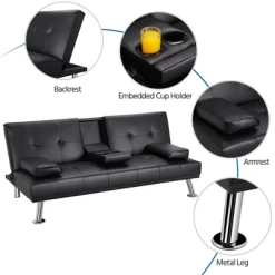 Yaheetech Convertible Futon Sofa Bed Tufted Fabric Futon With Cupholders And Pillows