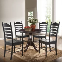 36″ Ryan Round Extendable Dining Table With 4 X Back Stools Distressed Oak – International Concepts