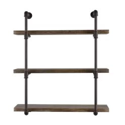 35″ X 31.5″ Three Tier Industrial Pipe Wall Shelf Natural – Danya B.