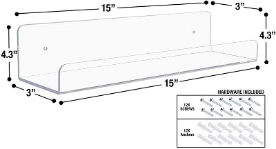 - MODERN DURABLE DESIGN Great as a single ledge or used in multiples for an elevated statement Made of durable 5mm thick acrylic Stronger and safer than glass Pack of 6 Measures approximately 15 x 4.3″x 3″