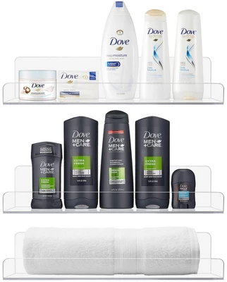 Curate an effortless wall display with the Sorbus Acrylic Floating Shelves. Whether for art, photos, or decorative objects, this ledge set is a simple solution for any room. It features a rectangular silhouette with a modern clear aesthetic. The minimal look fits most décor and can be installed virtually anywhere! Hang alone or pair with other styles from the Sorbus clear storage collection. Versatile for any space. These shelves add decorative style to any area of your home. Use them to hold kid’s books in the playroom, keep ingredients in the kitchen, or display framed awards in your home office. For a spa like retreat, use as a bathroom saver shelf to display small toiletries like nail polishes and essential oils. The possibilities are endless! Modern space-saving design. Wall mount display with easy assembly. Can be hung as a single ledge or with multiples for an elevated wall statement. Made of durable 4mm thick PS/acrylic. Stronger and safer than glass. Measures approximately 15″X 4.3″X 3”
