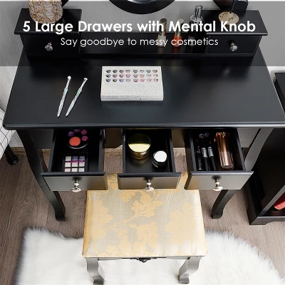 - Ample Storage Space:5 drawers and tabletop offer storage space for cosmetics, keeping your belongings well organized.