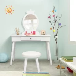 - Simple and Stylish Dressing Table Set: This simple oval mirror dressing table set featuring pure white appearance and modern design that can be integrated into various home decor. Simplicity is reflected not only in style but also in assembly. When it arrives, it’s partially installed and the only parts you need to install are the mirror and legs.
