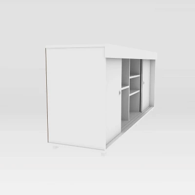 Elevate your Living room or bedroom with this grounded yet sophisticated TV unit. Adding a modern-contemporary touch to you entertainment space. Its versatility is unmatched with the options of colors ranging from black, white and even walnut. Emphasized by its earthy finish and clean-lined design, features 5 open shelves to organize your media accessories as well as 2 side storage spaces with additional closed door storage. It includes 2 openings for easy cable management and electronics ventilation. Made of sturdy particle board with painted surface. It fits a TV of up to 65 inches.