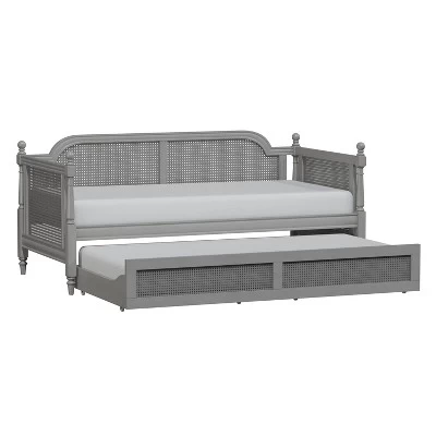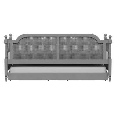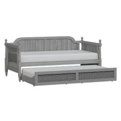 • Rubberwood and cane twin size daybed with trundle unit with French gray finish