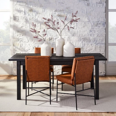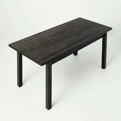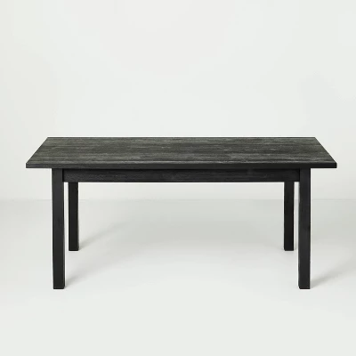 Add traditional charm to your dining space with this Wood Dining Table from Hearth & Hand™ with Magnolia. Crafted from wood, this black dining table in a distressed finish easily integrates into your existing decor style. Featuring a rectangle tabletop, this dining table is supported by four legs to create a simple yet appealing look — just add coordinating brown faux-leather upholstered dining chairs to create a comfy dining setup.