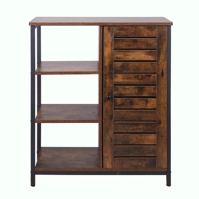Revamp your kitchen and dining space by bringing in this transitional style Storage Cabinet which offers spacious storage with 3 open compartments and 1 shutter door. Incorporated with 2 adjustable shelves, it is constructed sturdily from the combination of particle board and metal. Dimensions: 27.6×11.8×32.1