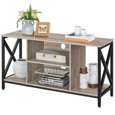 - Great Storage Capacity:This TV console for 55” TVs features a 2-tier central shelf and 2 side storage space for DVDs, a loudspeaker, game console, remote controls, vase or anything you like.