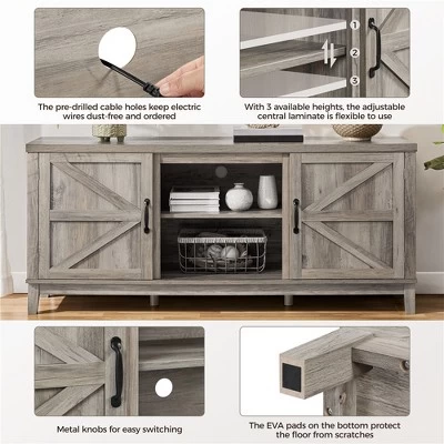 - Farmhouse Doors:Stylish doors highlight the unadorned farmhouse vibe of this TV console. When closed, shelves on the 2 sides are covered while exposing the central one, expressing an airy articulation while improving tidiness by hiding items behind the doors.
